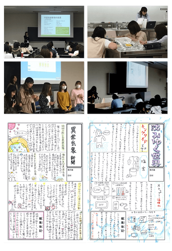 家庭科教職課程の必修科目である「食教育の研究」授業の中で、履修学生を対象に小学生版の授業を実施した。授業中はテキストとデジタルツールを使用しながら、考える時間や全員の前で発表することで共通理解を深めるようにした。