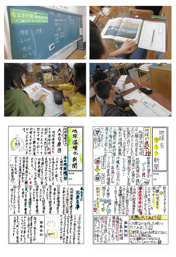 省エネ行動の冊子に沿って授業を進めた。子どもたちは、ステップ1で電気・ガス・水道のメーターの見方・読み方を学んだ。ステップ2では、メーターの記録を継続しつつ、気候変動が引き起こす問題や機器の設定でできる省エネ行動について知ることができた。DVD資料である未来の天気予報は子供たちにとって興味深く、理解を深めるのに有効であった。ステップ3・4では、自分の生活をそらたんからの挑戦状や省エネ行動トランプを使って振り返ることができた。その際、トランプが視覚的に理解しやすい、繰り返し省エネ行動を口にするなどの有効性があった。同じくステップ6のエコな買い物&調理カードも遊びながら学べるという点で有効であった。