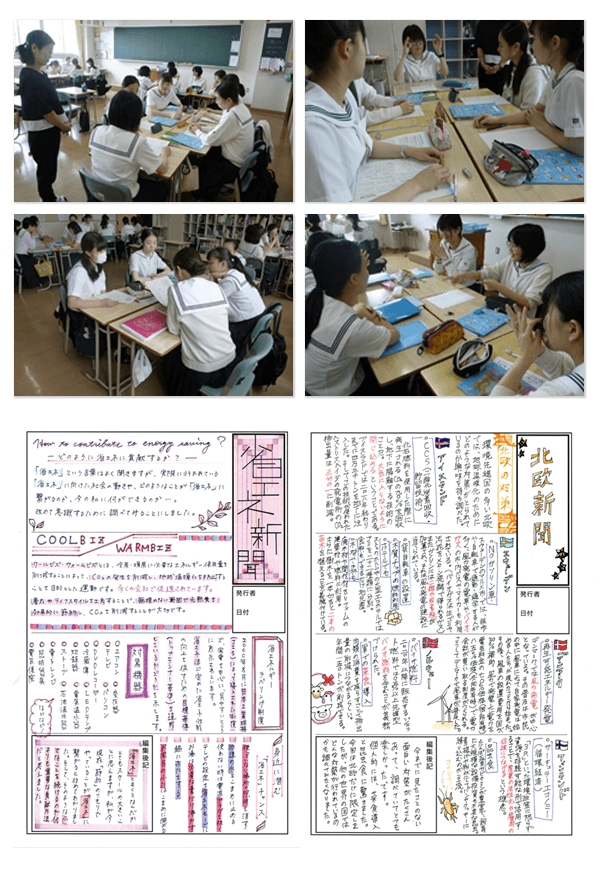 ステップ2「「温室効果ガスとは?」「気候変動が引き起こす問題」をグループ学習で考え発表させたが、どのグループも大変良く理解していた。省エネ行動トランプはより具体的な省エネ行動がわかると生徒たちに大変好評であり、新聞作成の調べ学習を通して、自分ができることを続けて実践していくべきだと理解したようだ。