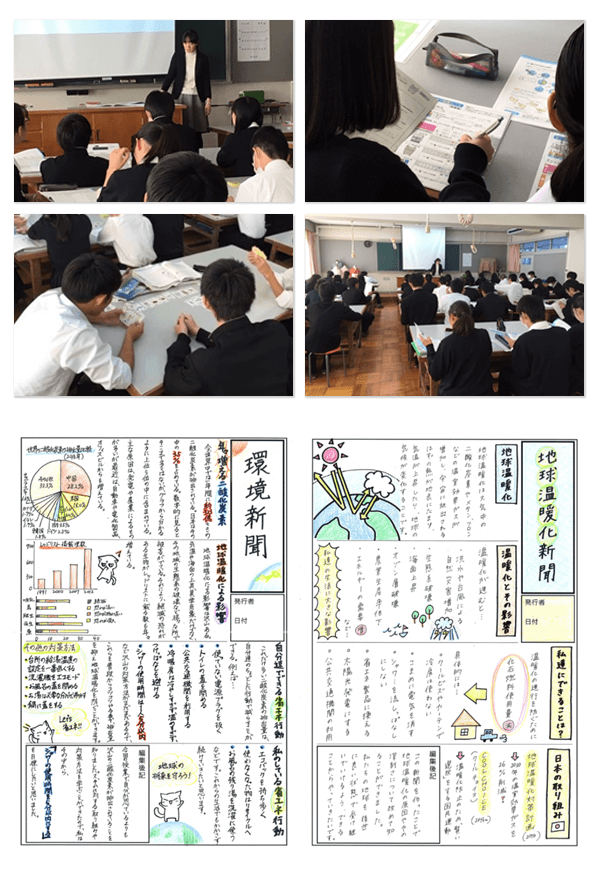 新聞作成・発表では、環境について自ら学び、さらに自分の考えや意見をまとめることにより、今後の自分の生活について考える良い機会となった。