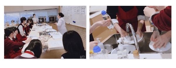 事前の授業として身近な食品ロスについて調べ、どのような活動が出来るかを考えた。さらにエネルギー問題に広げ、水資源について考える導入として「節水実験」を行った。生徒たちは石油資源があと約50年で枯渇するという事実に大変驚き、自分の生活を顧みるきかっけになったようだ。